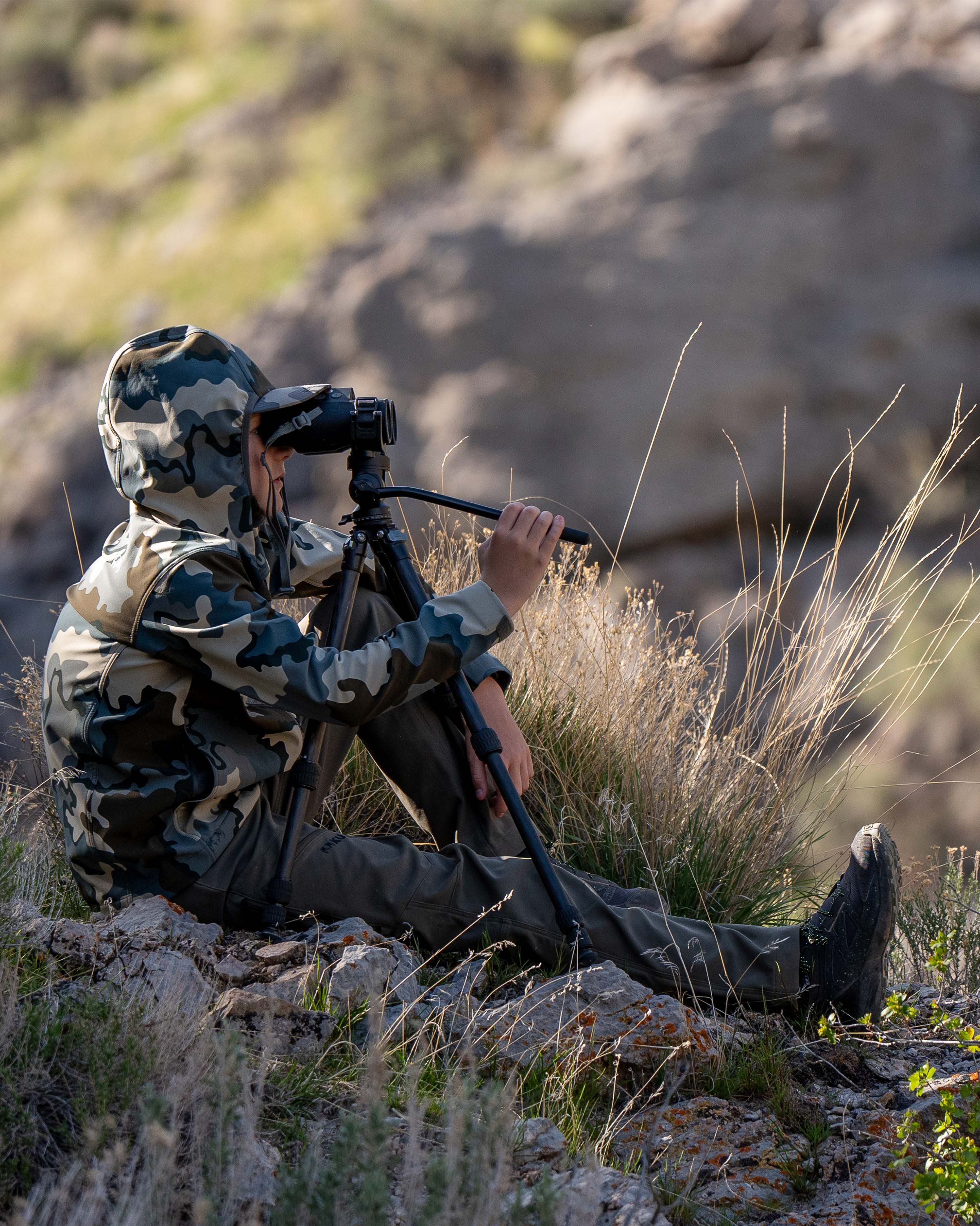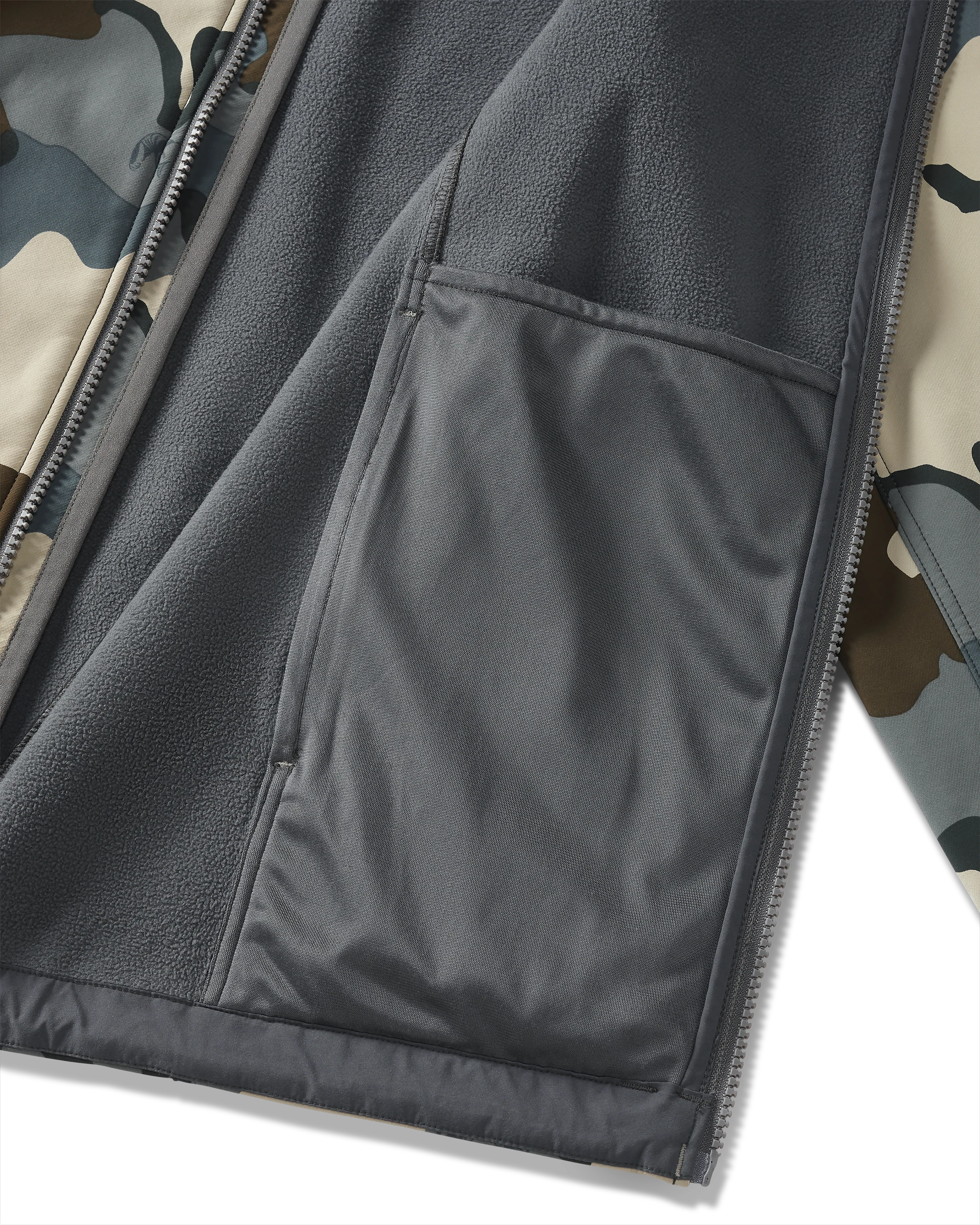 The Trailblazer features a bonded two-layer soft shell fabric. The outer layer is made from a tightly woven, durable, and snag resistant polyester that remains quiet in close encounters, while the inside features a comfortable, insulating, and moisture wicking micro fleece.