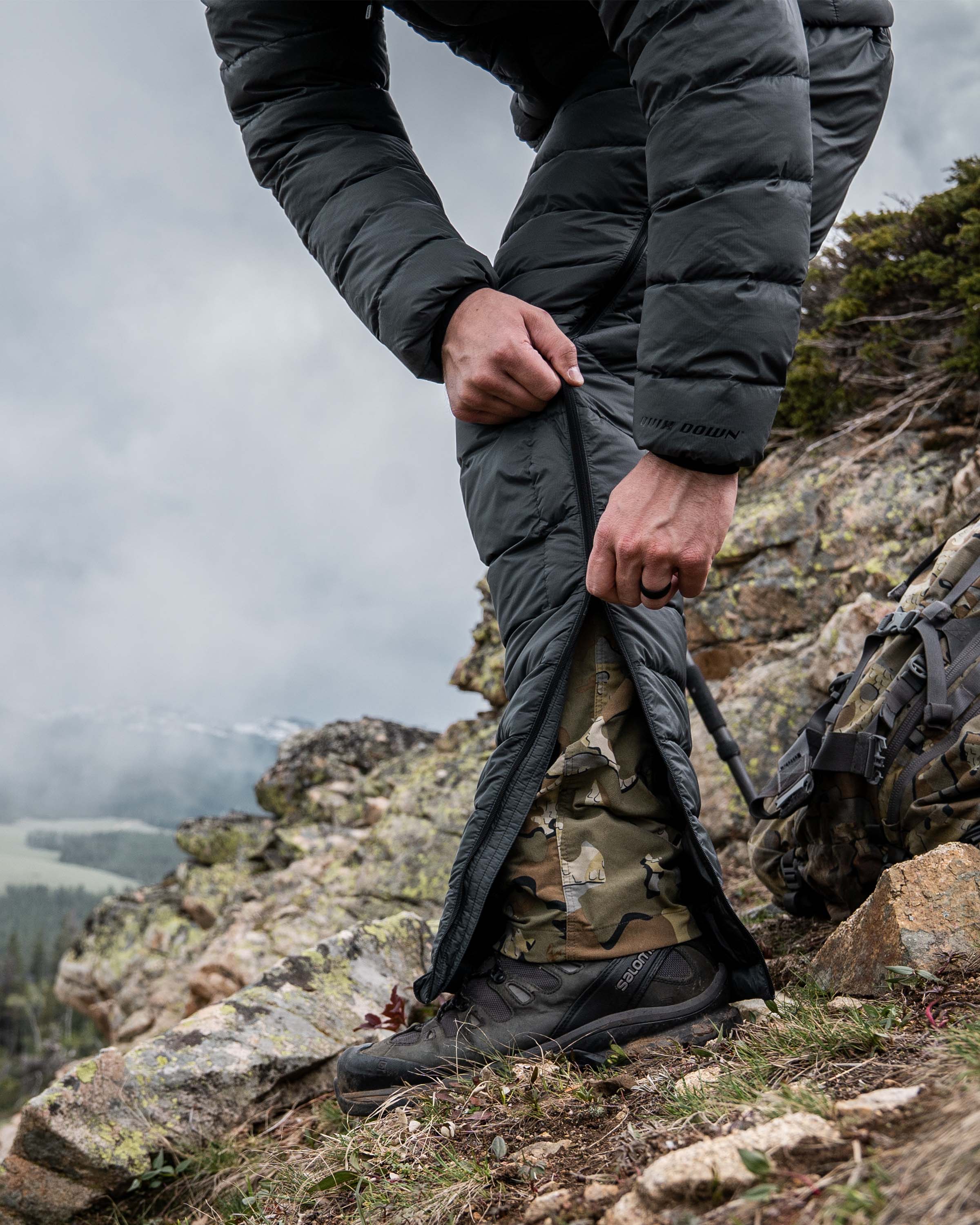 The Super Down LT Pant is sized with a versatile mid-layer fit, to comfortably layer over a base layer or hunting pant, yet trim enough to layer under our rain gear in the same size. The pant features full-length side zippers so you can put them on or take them off while standing, and without removing your boots.